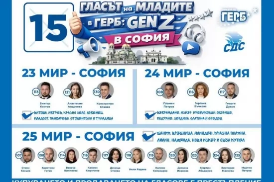В 23, 24 и 25 МИР в София 15 млади българи, родени след 1997 година, влизат в предизборната надпревара с номер 15 за ГЕРБ-СДС