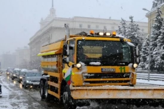 Във връзка със снеговалежа в София през нощта са извършени обработки със смеси срещу заледяване, както и бутане на снежна маса по основни улици и б