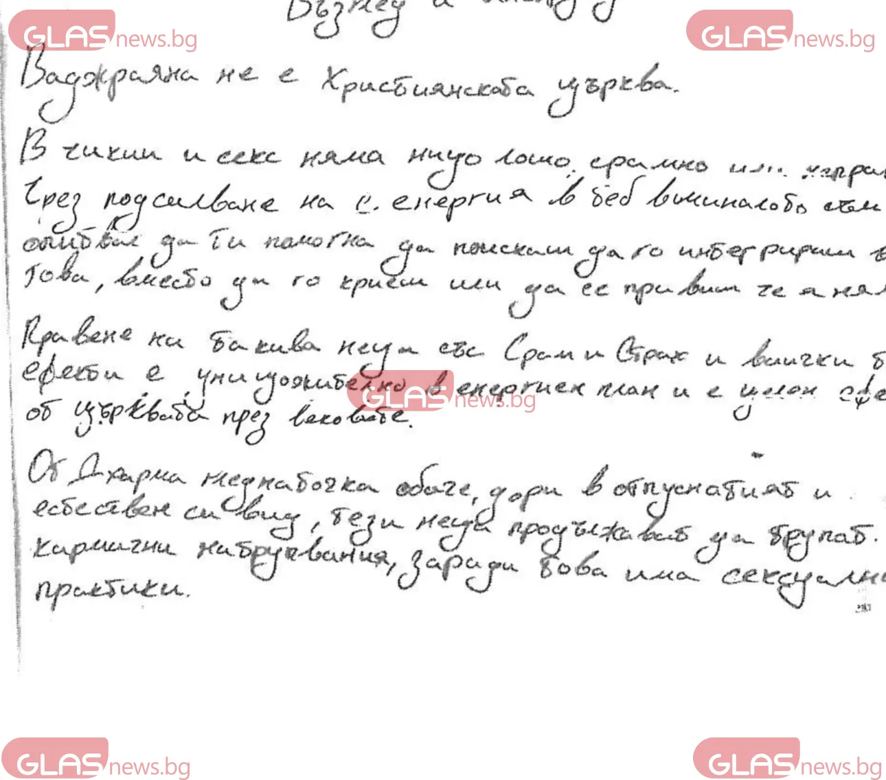 "Правене на такива неща със срам и страх и всички тези ефекти е унищожително в енергиен план и е целен ефект от църквата през вековете. От дхарма гледна точка обаче, дори в отпуснатият и естествен си вид, тези неща продължават да трупат кармични натрупвания, заради това има сексуални практики", продължава текста, написан от Калушев.