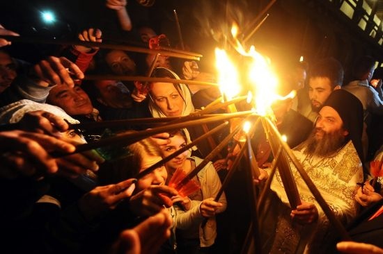 През цялата история никой не е съумял да разкрие тайната на слизането на Благодатния огън, който символизира светлината на Възкресението Христово, вярващите го считат за реликва. Няколко часа по-рано пазителите на храма отключиха храма на Божи гроб.