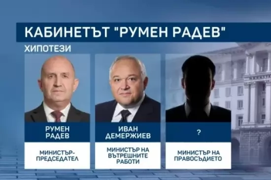 Първата задача е вече ясна – изборът на нов Висш съдебен съвет и нов главен прокурор. До момента за поста министър на правосъдието Радев е залагал на Янаки Стоилов и Крум Зарков – единият вече е конституционен съдия, а другият оглавява БСП. Едно от знаковите лица в "Прогресивна България" Иван Демерджиев е бил заместник в този ресор във втория служебен кабинет на Радев, а в следващите поема Министерството на вътрешните работи.