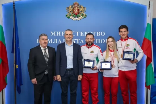 Министърът на младежта и спорта Димитър Илиев награди Марияна Узунова и Калоян Петров за представянето им на Европейското първенство по скокове на батут в Портимао, Португалия. Това съобщиха от пресцентъра на ММС.